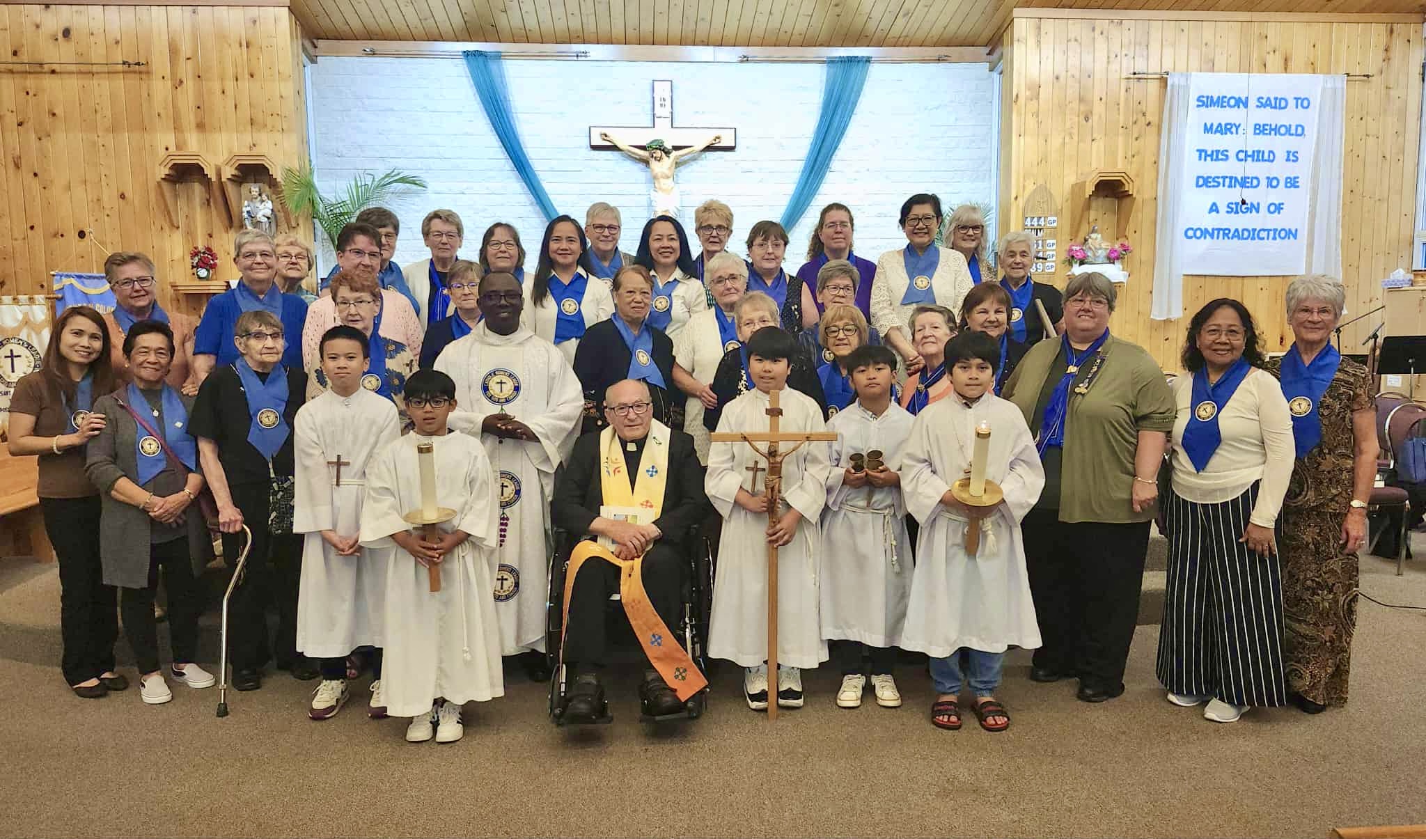 On Saturday, September 13, our council St. Peter the Apostle in Saskatoon, Saskatchewan, celebrated its 55th Anniversary with a mass, supper and social. Seated in the middle is Monsignor Fr. Raymond Senger, next to him on the left is our parish priest Fr. Clement Boachie Arthur. On the left, 2nd row is the Diocesan President, Edna Hodgson. On the right side first row third from the end is our provincial president Helen Kayfish.